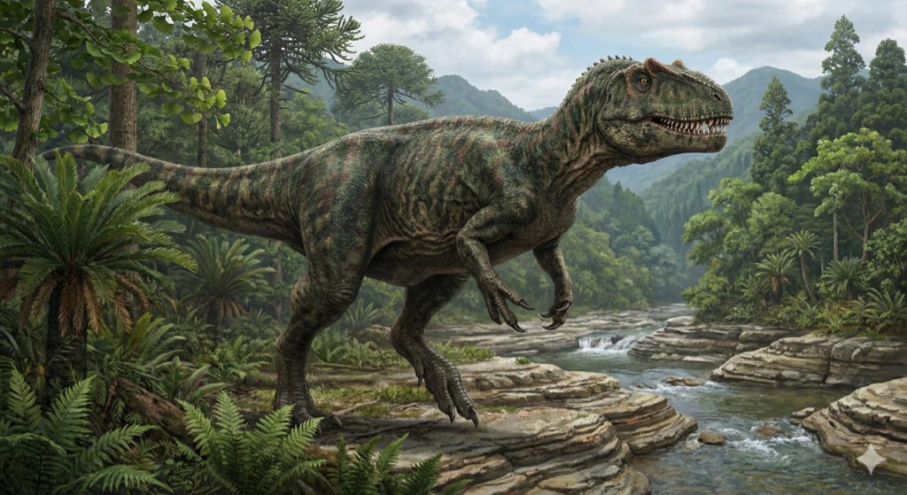 当時、発見された化石は歯の縁に鋸状のギザギザのある鋸歯(ぎょし)のみという状況でしたが、その大きさから全長は10m程度あったのではないかと推測され、その後、1992年にメガロサウルス科の恐竜として正式に研究論文が発表されました。
